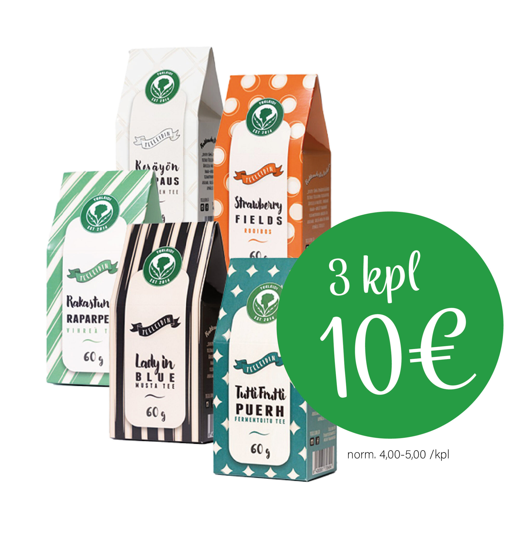Tai valitse valmiit Tee hyvää -teepakkaukset, ilman minimitilausrajaa. Myy halutessasi ennakkoon ja tilaa teet vakiovalikoimasta.